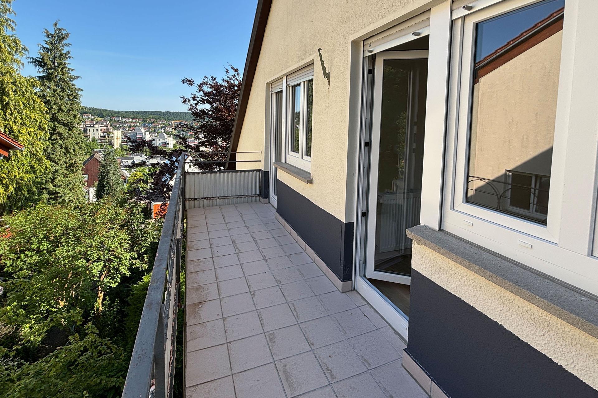 –Schöne, große Terrasse mit Blick ins Grüne